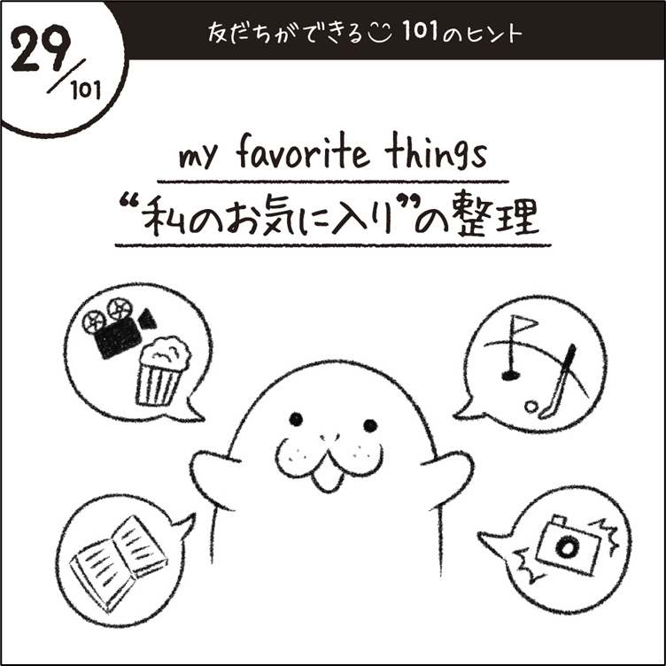 *自分の好きな事を話せる機会=自己紹介は、仲良くなれるチャンス! 自分のお気に入りを話せるように準備しておくと、突然の自己紹介でも スムーズに伝えられます♪